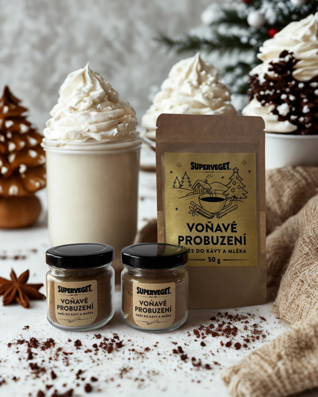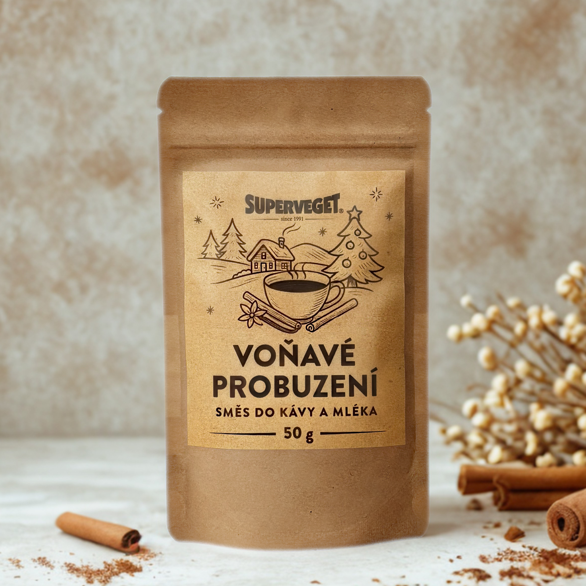 Dopřejte si šálek, který provoní celý Váš den. Naše směs skořice, hřebíčku, badyánu, zázvoru, pomerančové kůry, koriandru a přírodního vanilkového aroma promění obyčejnou kávu v aromatický zážitek – nejen o Vánocích. Skvěle se hodí do cappuccina, horké čokolády, bombardina nebo dezertů.